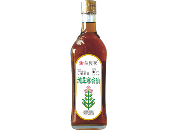 純芝麻油經篩選、漂洗、炒子、精篩、壓榨、過濾、沉淀等多道工序精制而成。